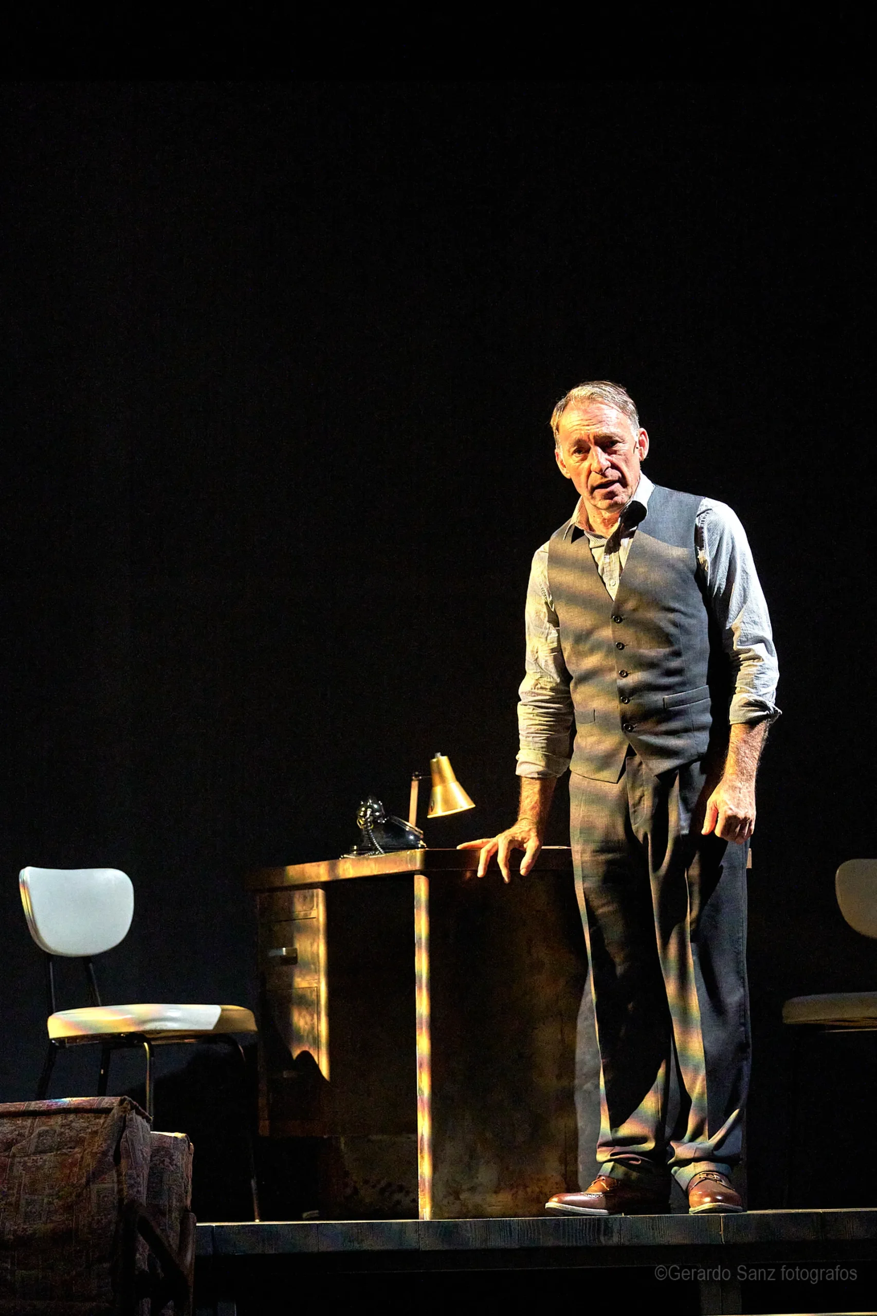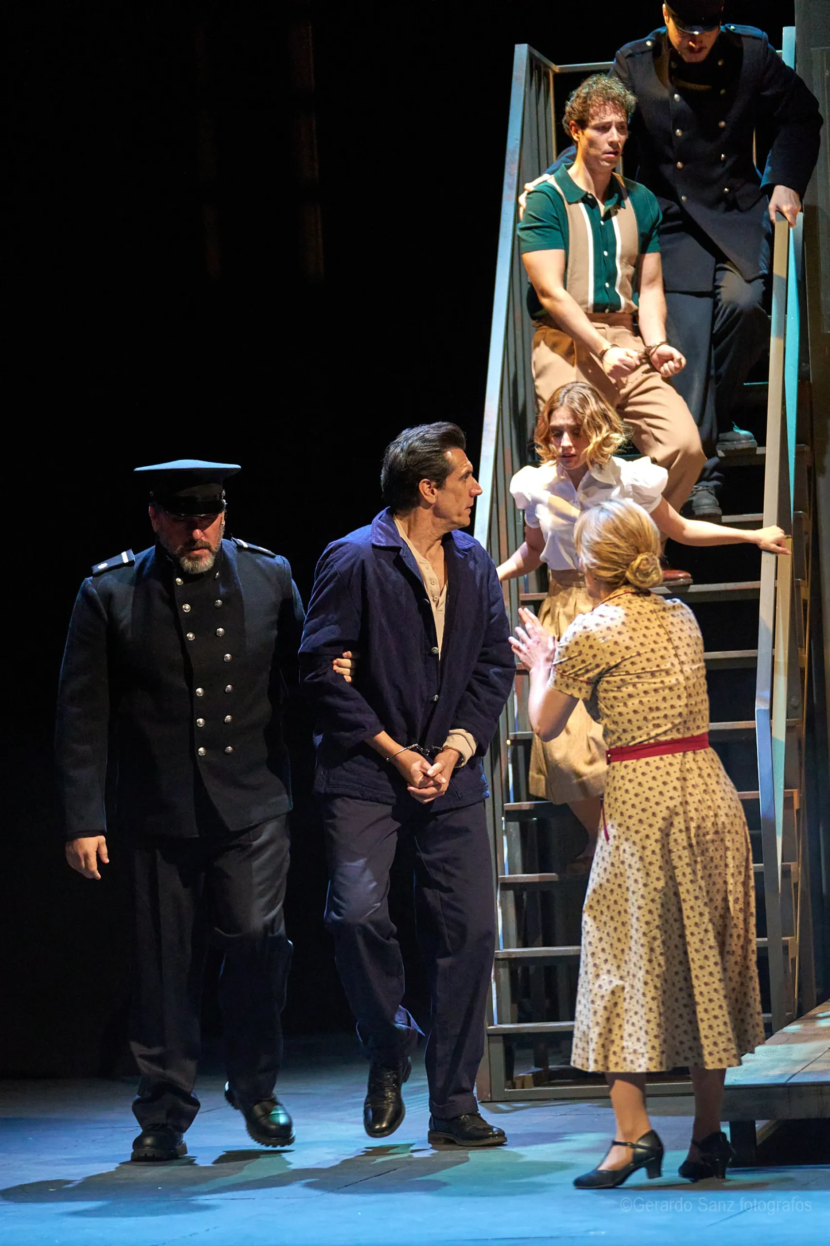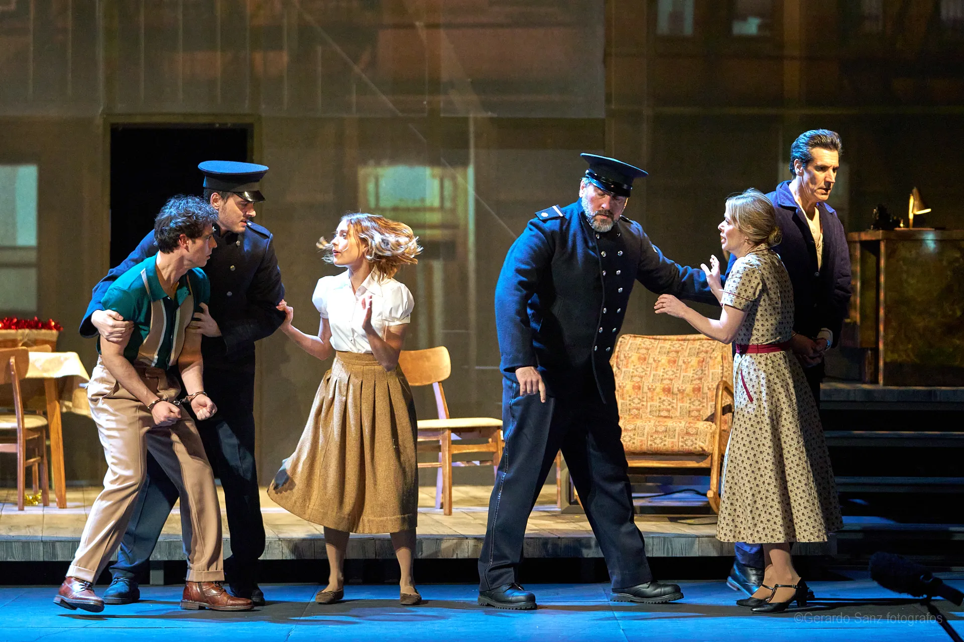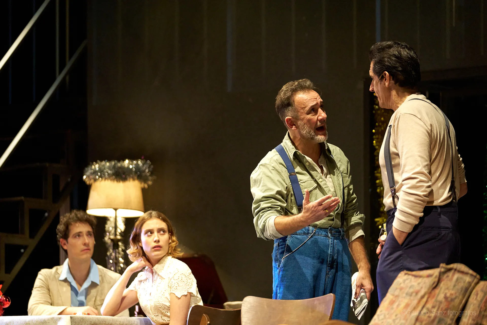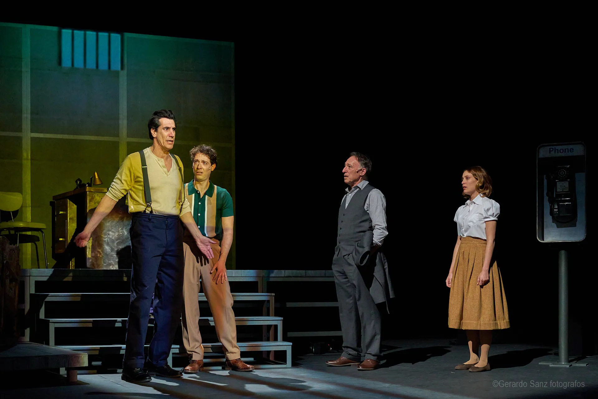 Nos centramos en el eje de Eddie: su relación fría (ha perdido el deseo) con su esposa Beatrice, con Catherine y con Rodolfo. Pero a ello hay que añadir el enfrentamiento brutal con Marco, el hermano mayor de Rodolfo. Contribuyen a la tragedia el abogado Alfieri (una especie de narrador omnisciente que todo lo sabe), el agente de inmigración y el coro de vecinos, que evolucionan de admirar a Eddie a abandonarlo y criticarlo cuando acusa a los italianos ante inmigración. En nuestra versión potenciamos el drama pasional, la conducta irracional que se deja dominar por el deseo, tal y como nos lo muestra Miller.