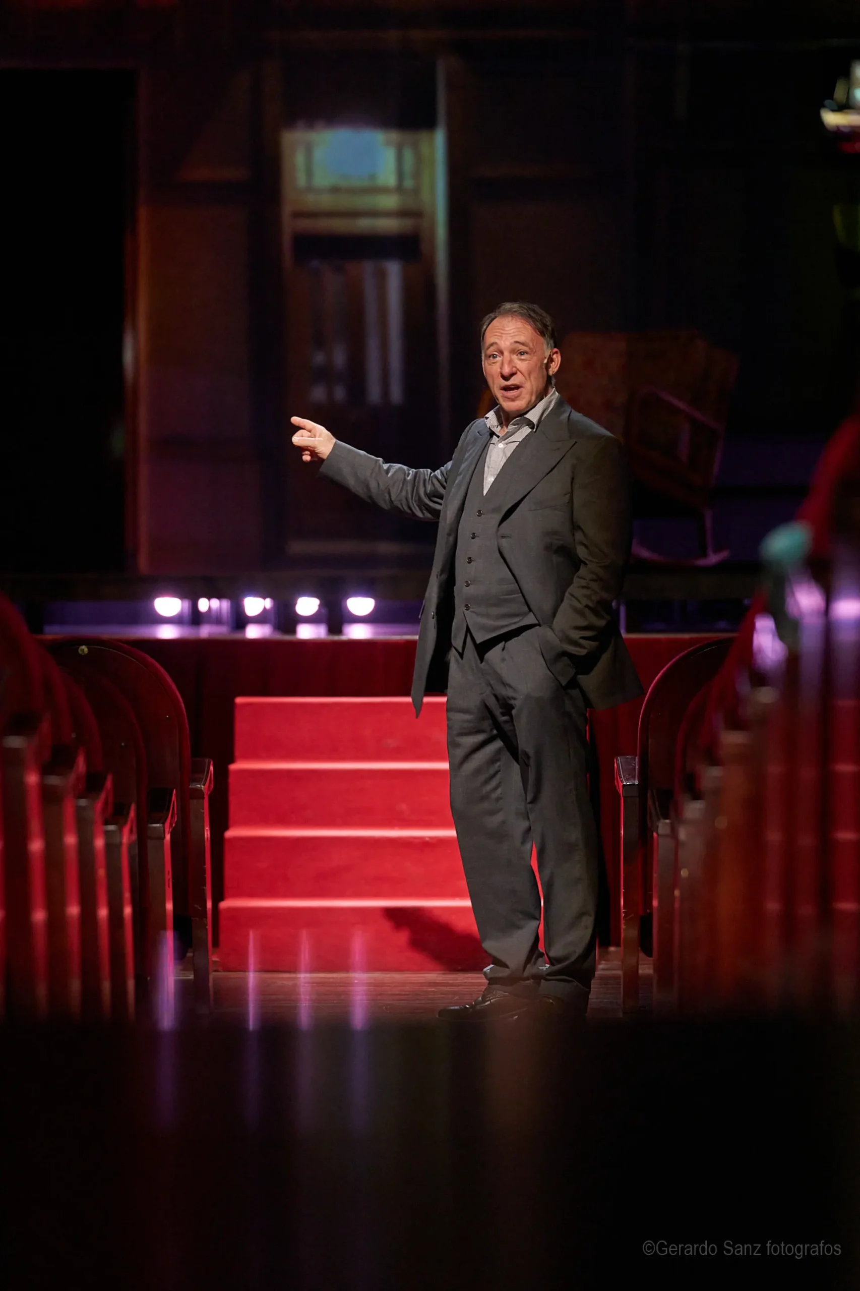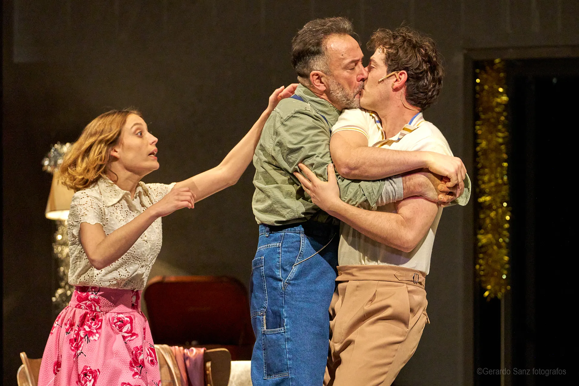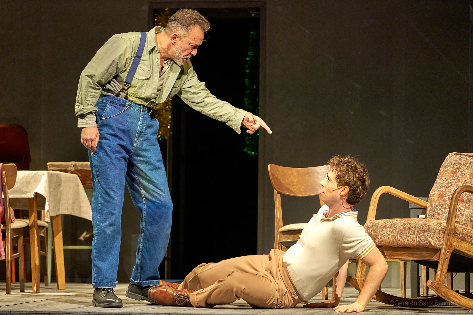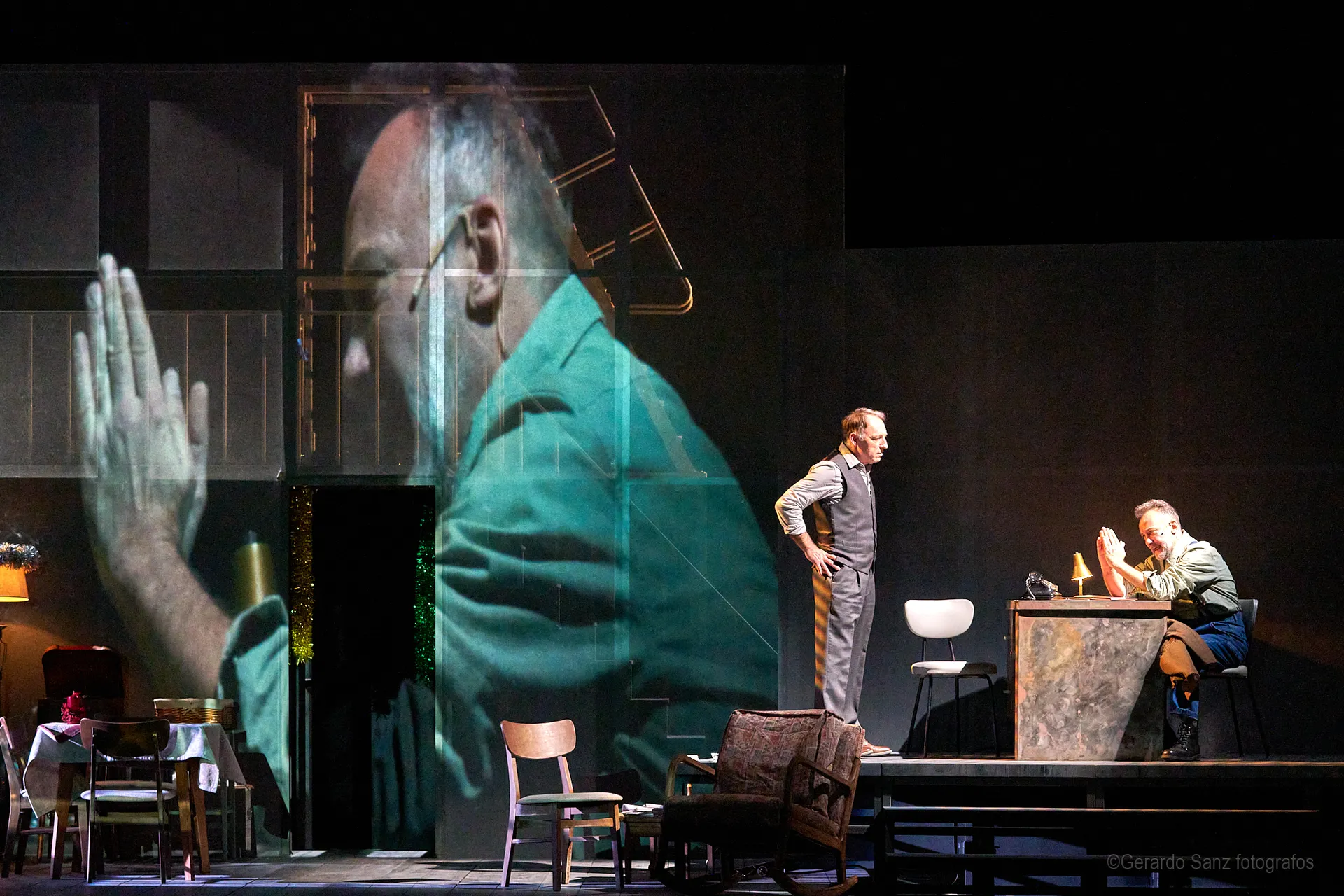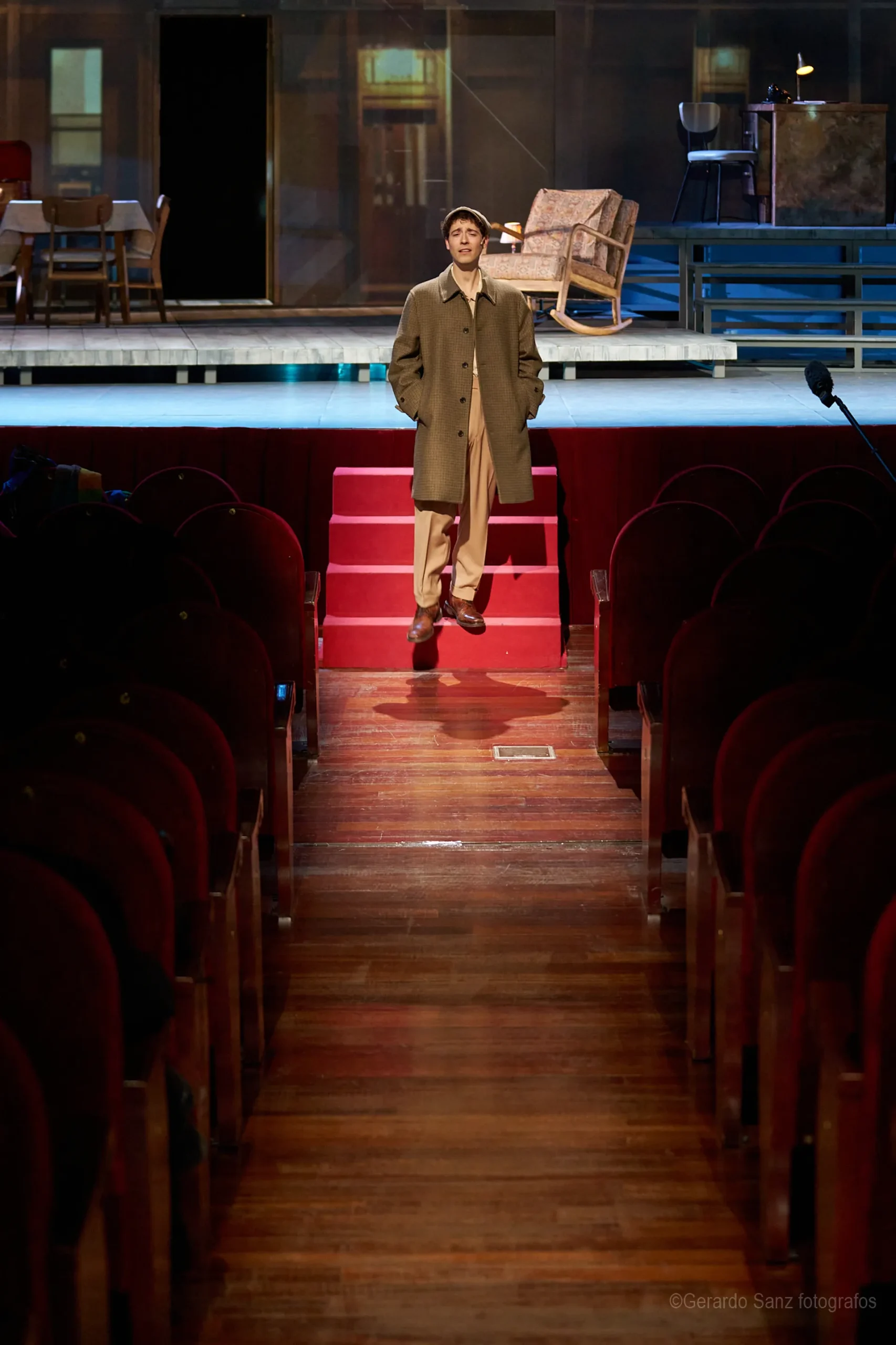Nos centramos en el eje de Eddie: su relación fría (ha perdido el deseo) con su esposa Beatrice, con Catherine y con Rodolfo. Pero a ello hay que añadir el enfrentamiento brutal con Marco, el hermano mayor de Rodolfo. Contribuyen a la tragedia el abogado Alfieri (una especie de narrador omnisciente que todo lo sabe), el agente de inmigración y el coro de vecinos, que evolucionan de admirar a Eddie a abandonarlo y criticarlo cuando acusa a los italianos ante inmigración. En nuestra versión potenciamos el drama pasional, la conducta irracional que se deja dominar por el deseo, tal y como nos lo muestra Miller.
