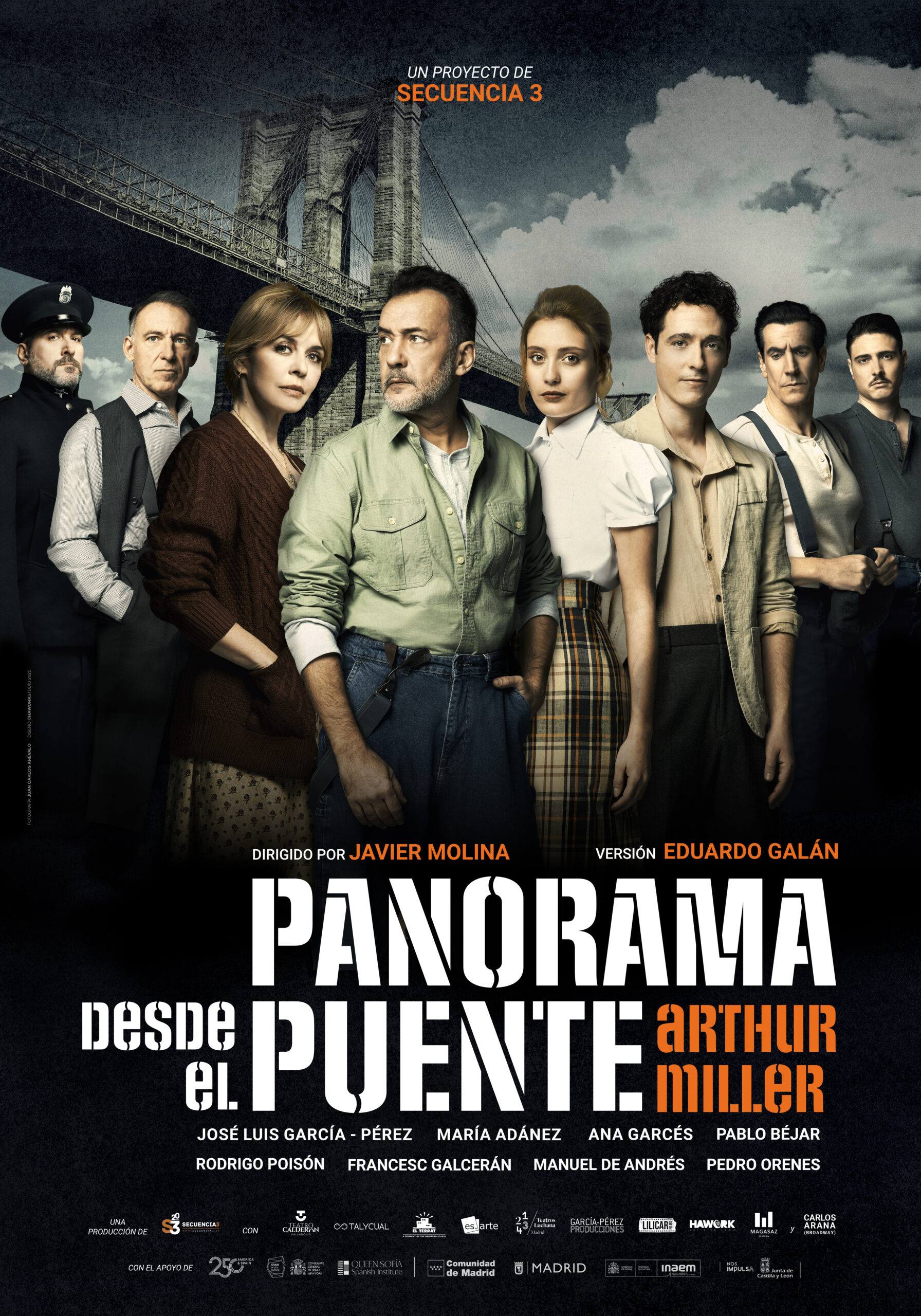 La obra aborda temas como las consecuencias trágicas del deseo prohibido, la inmigración ilegal, el sueño americano y las dinámicas familiares, mientras reflexiona sobre los límites entre el deber y deseo. Con una narrativa dramática intensa y personajes profundamente humanos, Pano- rama desde el puente sigue siendo una pieza emblemática del teatro contemporáneo. Con diálogos rápidos y duros, con fuerza dramática, con profunda humanidad.
